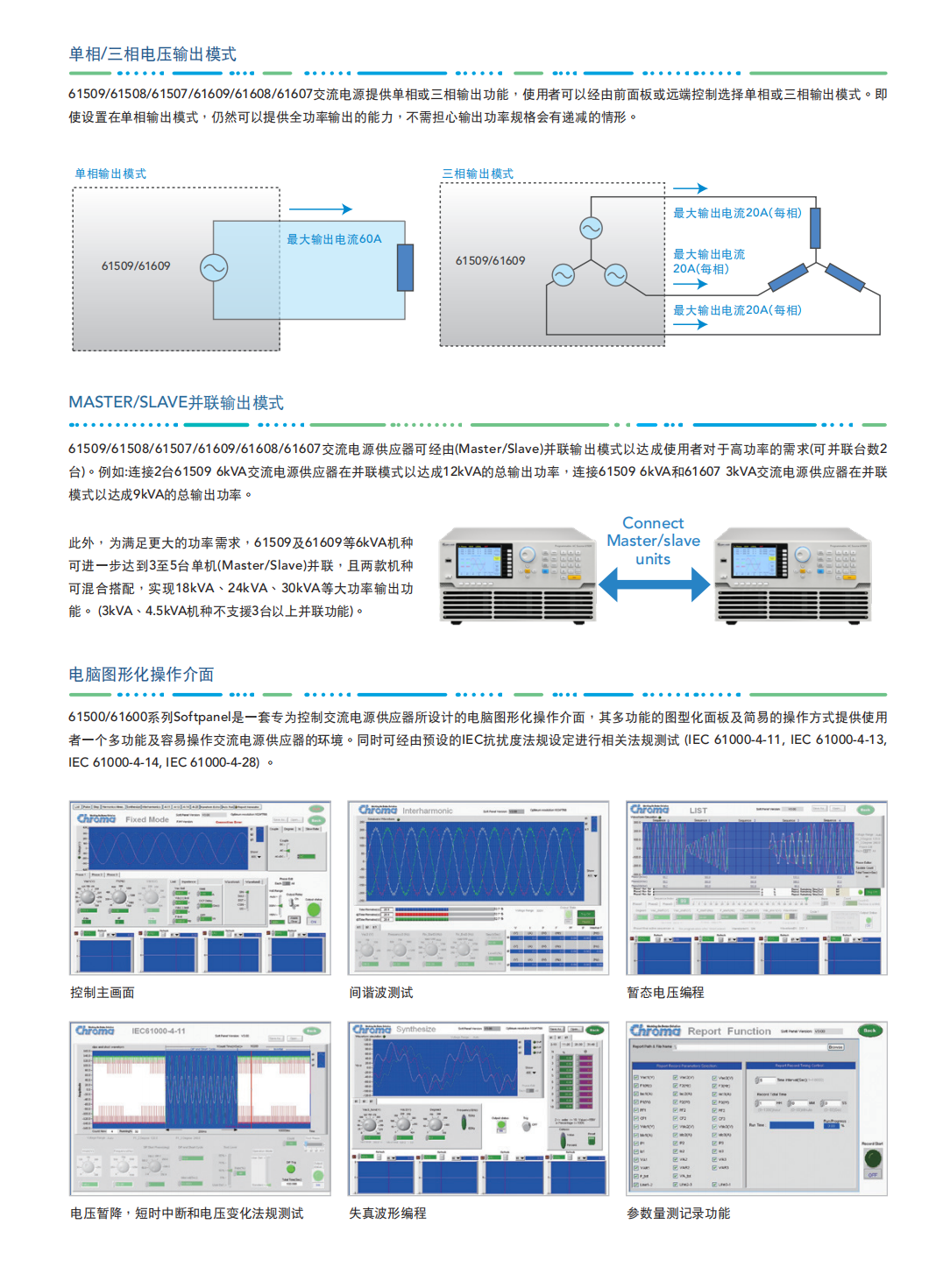 Chroma进阶可编程交流电源MODELMODEL 61509/61508/61507/ 61609/61608/61607