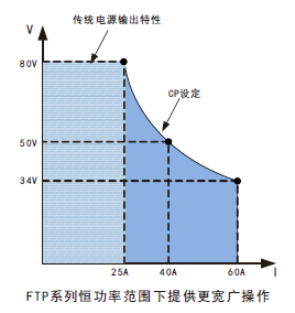 FTP系列拥有超过2.4倍宽范围输出量程。可在设定范围内,自动调整输出电压、电流,实现恒功率输出。CP功能对太阳能光伏模拟测试,负载稳定性测试及保护安全性测试提供帮助。