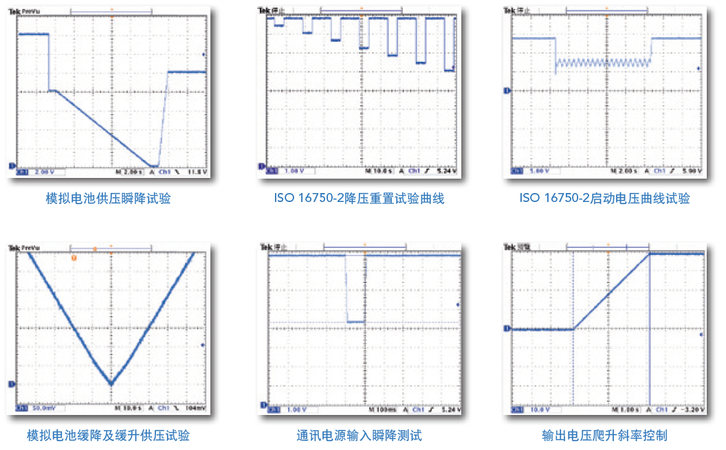 62000H系列电源供应器另一个独特的功能为可建立复杂的DC瞬时波形。此功能可对设备进行电压漏失、瞬断和其他电压变化等测试,是用于航空设备测试、太阳能逆变器测试和其他会产生电压中断之设备测试的理想选择。其应用的范围包括DC/DC转换器和逆变器、压降测试、引擎启动仿真、电池自动充电、电子产品生命周期测试等等。