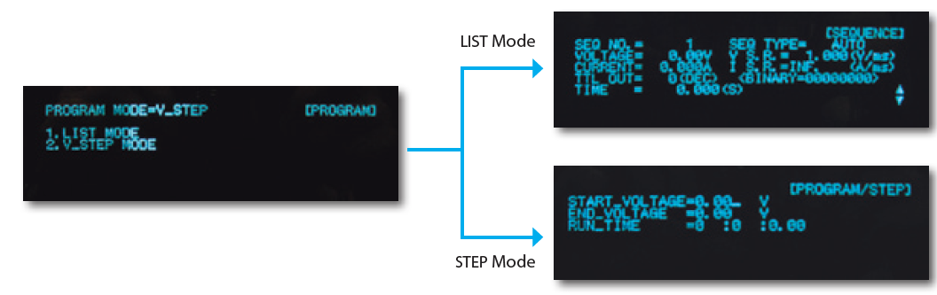62000H系列电源供应器的LIST和STEP模式提供自动程序功能。LIST模式提供100个用户可程控排序,具有时间设定范围从5ms到15000s,还有电压/电流斜率控制。STEP模式可设定起始、结束电压,且提供10ms到99 hours的运转时间予自动测试应用。应用的范围包括 DC/DC转换器和反用换流器、电压漏失测试、引擎启动仿真、电池自动充电、电池电压漏失仿真、电子产品生命周期测试与航空电子测试。