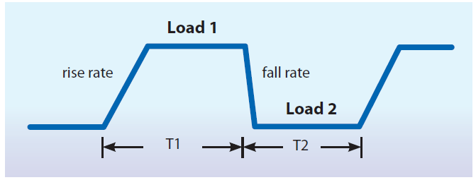 6310A提供高速的可编程动态负载特性仿真功能,下图可说明6310A的可编程参数: