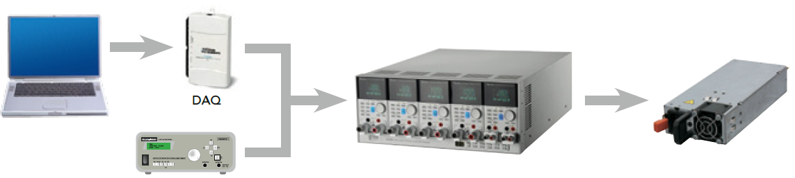 除一般的定电流、定电压、定功率、定电阻拉载模式外,在拉载任意波形时,一般传统的方式是透过计算机将预先储存的波形透过DAQ卡或者单纯的透过任意波形产生器将波形送给电子负载进行拉载,进而达到拉载任意波形的目的,如下图所示。