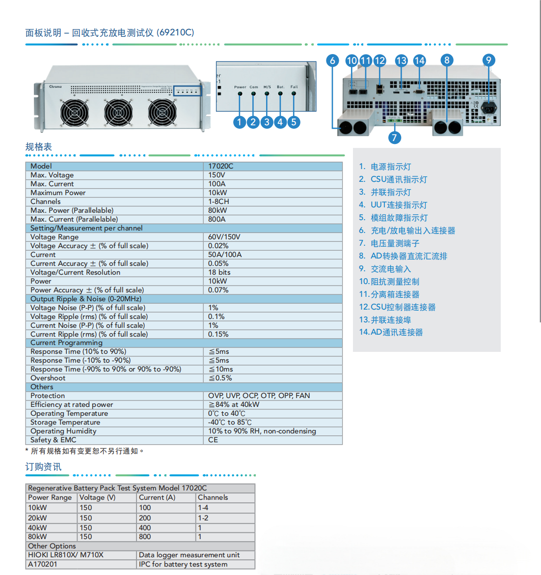 Chroma 17020C系统是专门为二次电池模组及电池包测试设计的高精密设备,适用于电池模组/电池包的续航力试验、产品进出货检验设计验证研究,并可进行生产线上容量学习(Learning)与测试。